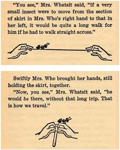 Shelly Jarvis: A Wrinkle in Time by Madeleine L’Engle was the first sci fi I ever read and holds a special place in my heart. I read it in 3rd grade but still clearly remember the illustration they used to demonstrate the concept of “wrinkling” time/space for travel.